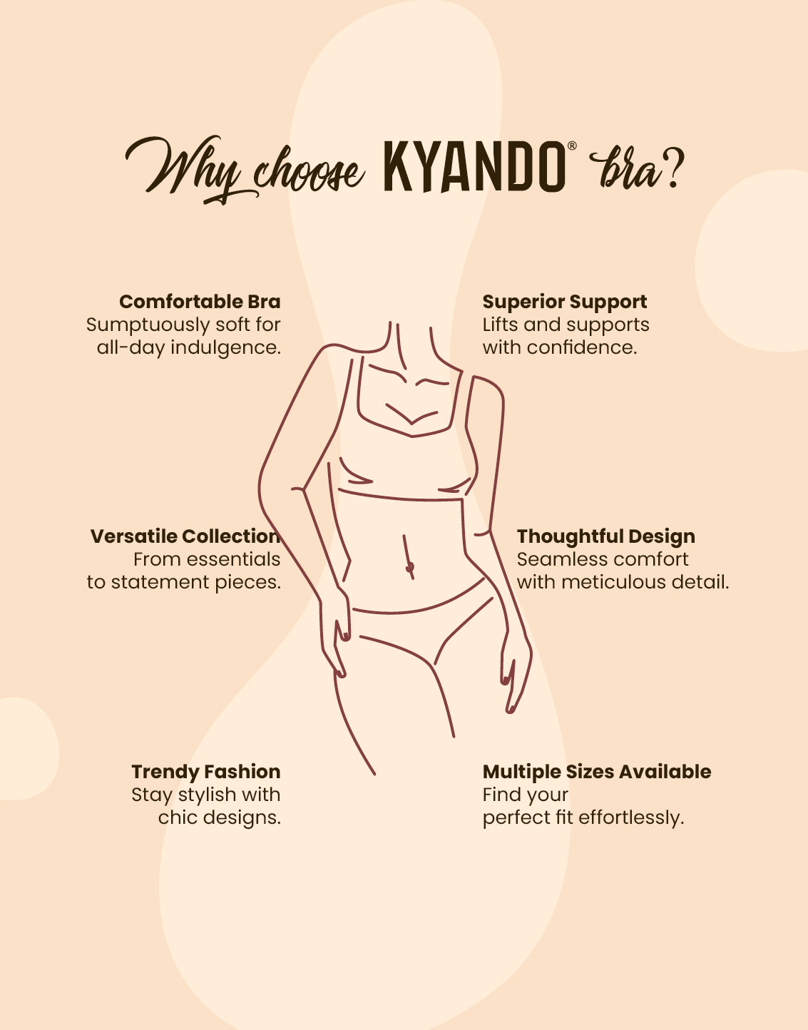 Kyando’s full-coverage bras provide excellent support, reduce spillage, and offer a smooth appearance under clothes, making them ideal for both formal and casual wear.