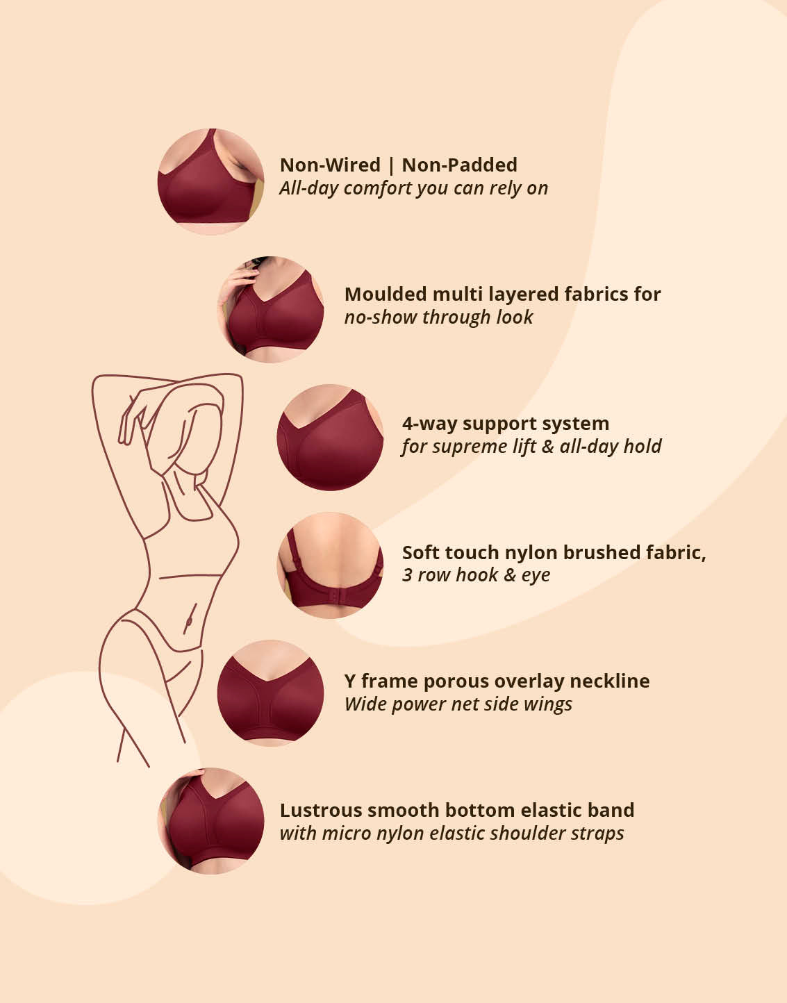 Soft lined, Perfect coverage non wired non padded bra Moulded multi layered fabrics for no-show through look Bottom shaper sling... Read more Read more